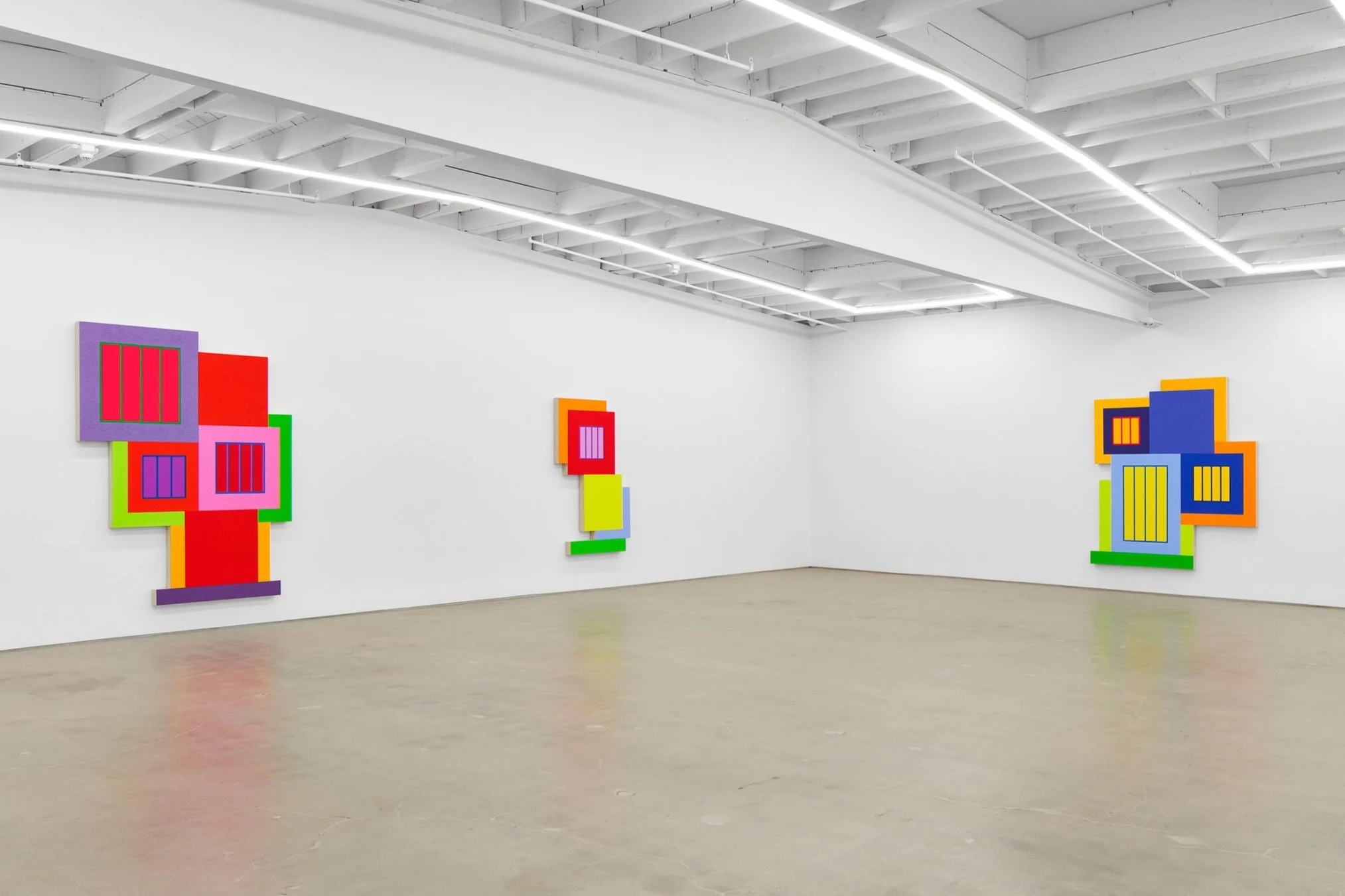 Installation by Peter Halley, with works by Lauren Clay, Andrew Kuo, and RM Fischer